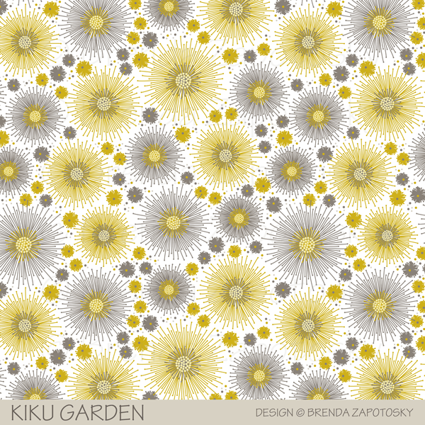 I’ll end this post with a look at a few more patterns from the autumn colorway of my Kiku Garden Collection: