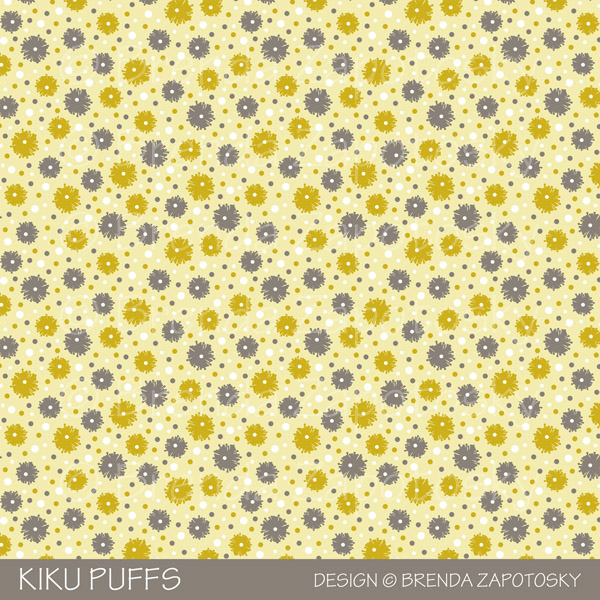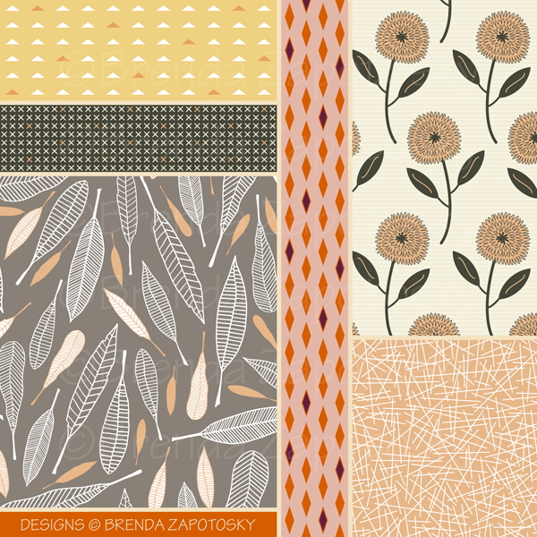 To keep the group collection to a manageable size and aide shoppers in finding great prints and coordinates there are actually 6 separate collections featuring our spring colors. The main collection features a wide range of design styles, basically we could submit up to 5 designs of anything we liked as long as they met the color guidelines. Here are the 5 designs of mine that you can find it the MAIN COLLECTION: